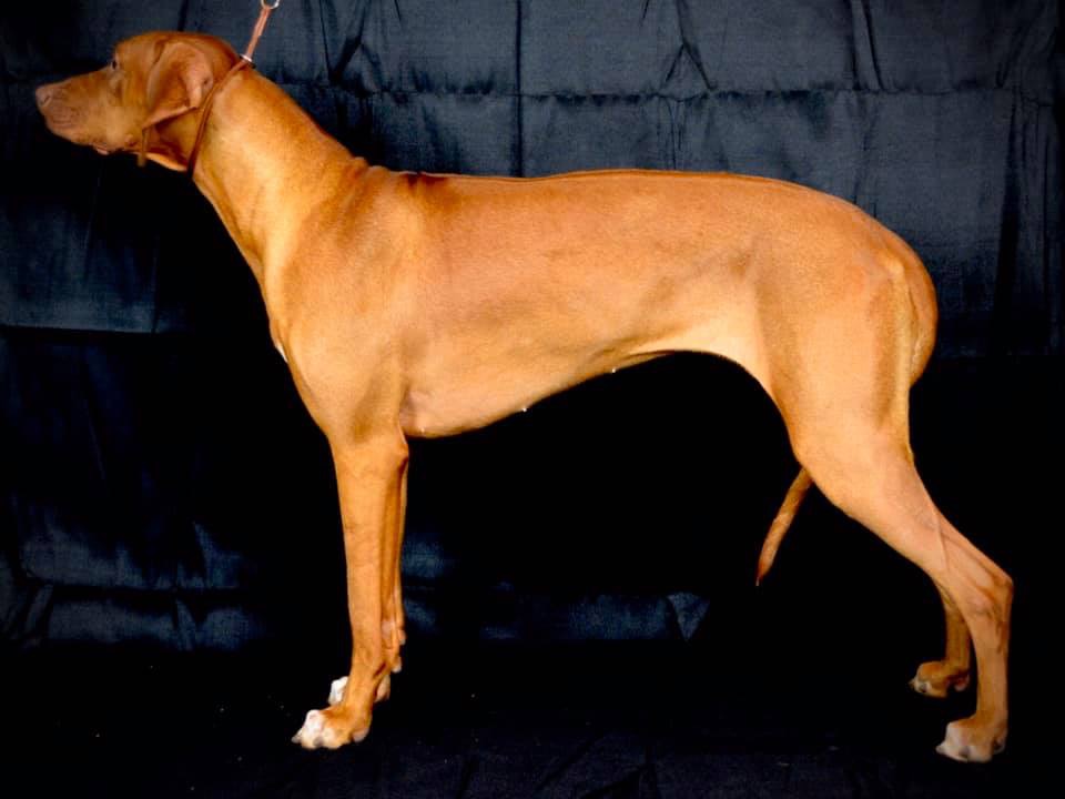 Rhodesian Ridgeback bitch; @12 mo old, 25.5″ at the shoulders, 70 lbs